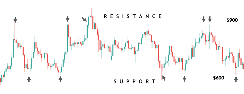 The support level in trading is a price point where a stock or asset stops falling because many traders start buying at that price. It acts like a floor that supports the price. If the price drops below this level, it might fall further, showing weak demand.